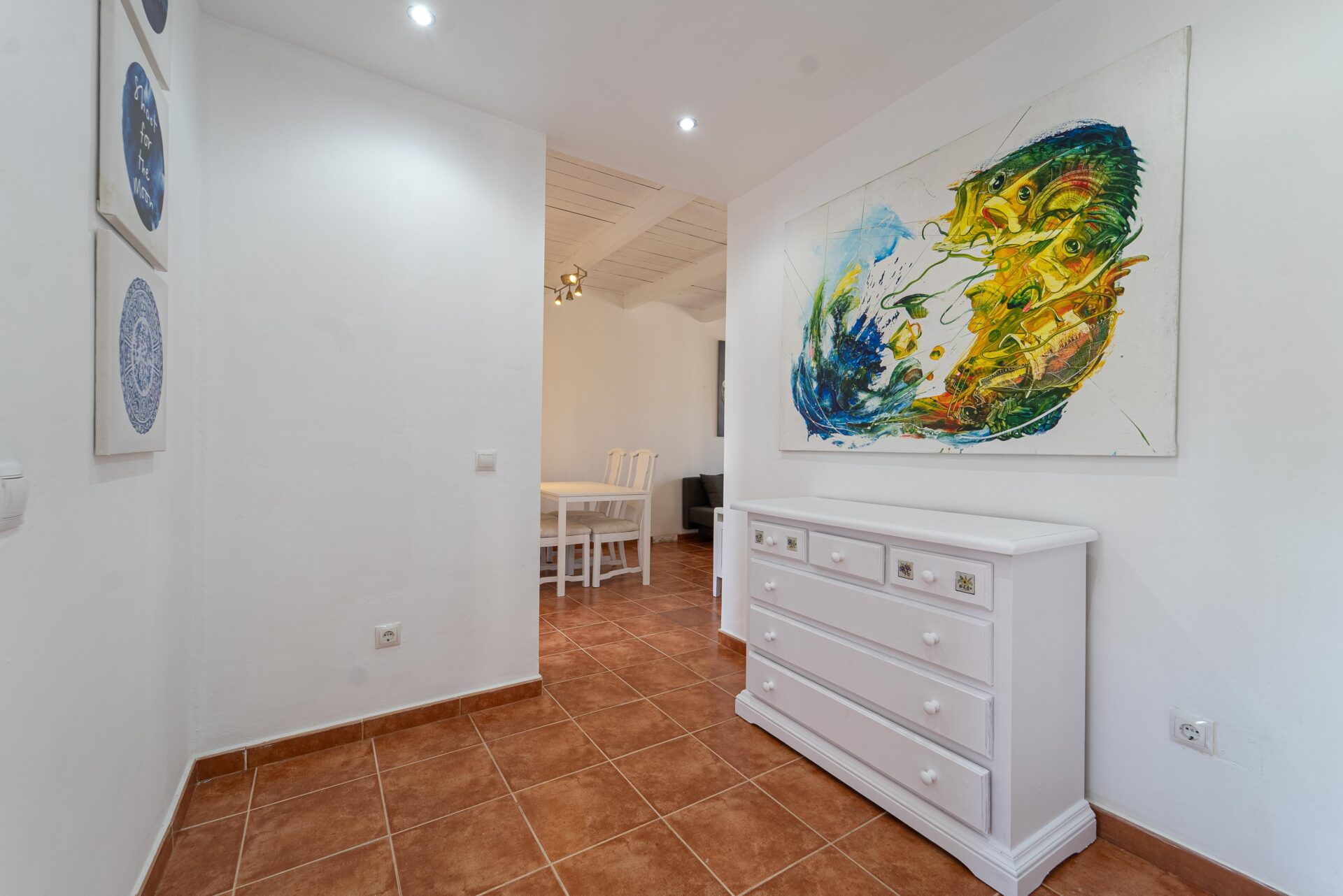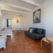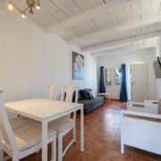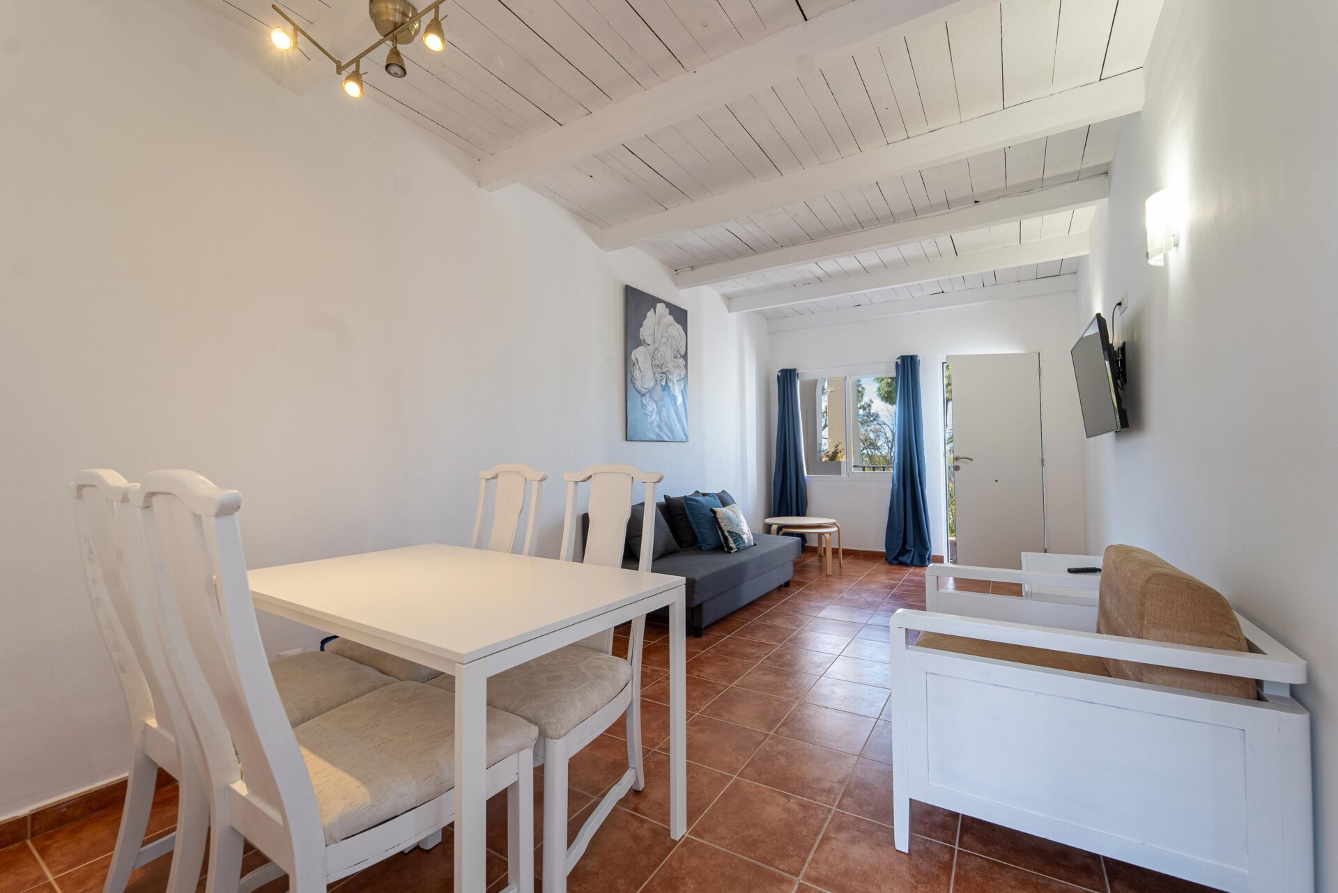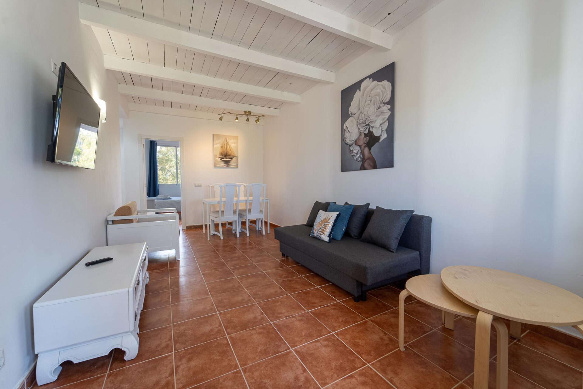 En su entrada podrá encontrar una preciosa sala de estar con un sofá fácilmente convertible en cama doble y una mesa comedor junto a un armario empotrado al fondo encontraremos la cocina con una salida a una pequeña terraza soleada.