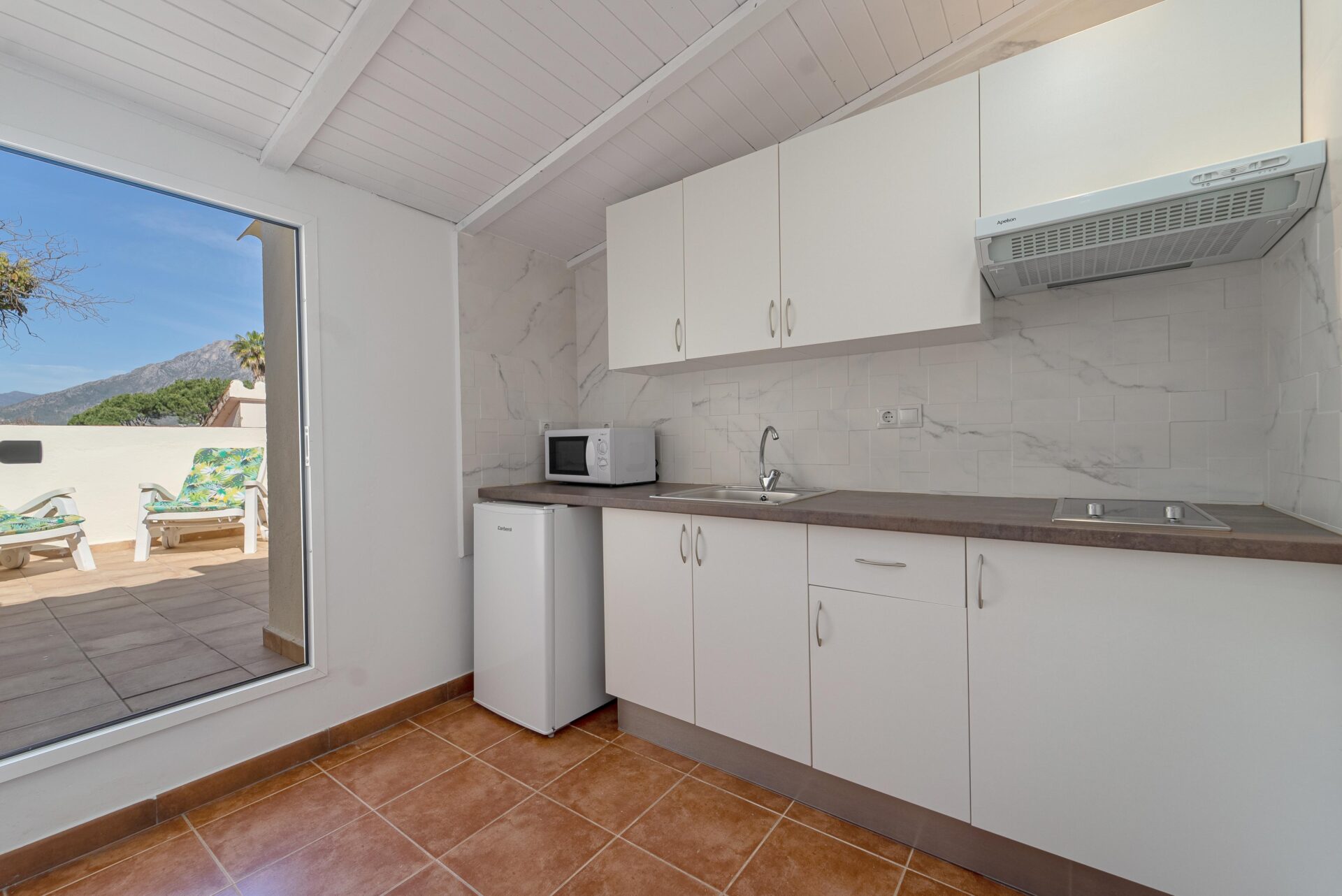 Ubicado en una magnifica villa apartahotel completamente rehabilitado, con piscina, zona de barbacoa y un mirador espectacular con vistas al mar, se halla en una de las zonas más tranquilas junto al arco de la entrada de Marbella y a pocos metros de la playa de Cable y a unos 10 minutos a pie de la playa El Pinillo.