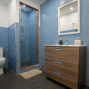 A un lado de la sala de estar encontraran la puerta de entrada a la habitación con  cama de matrimonio y un cuarto de baño con ducha y completamente equipado.